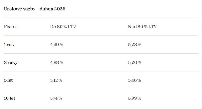 📊 Aktuální sazby podle fixace