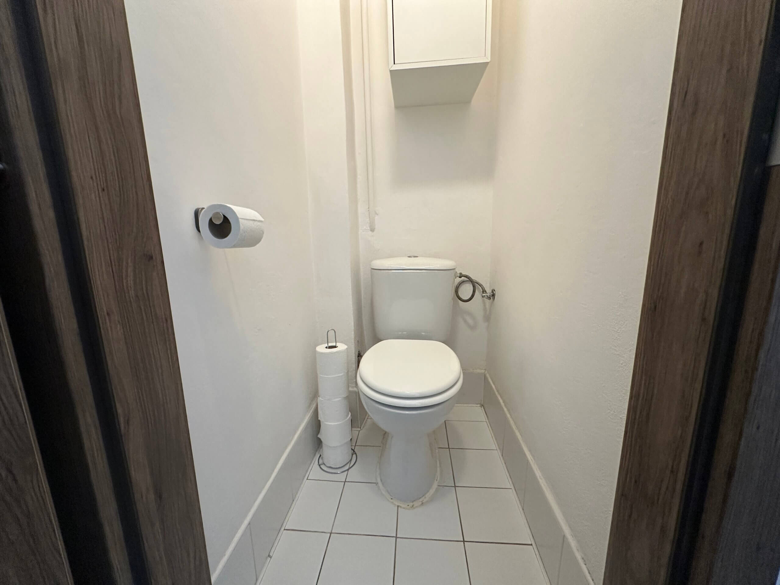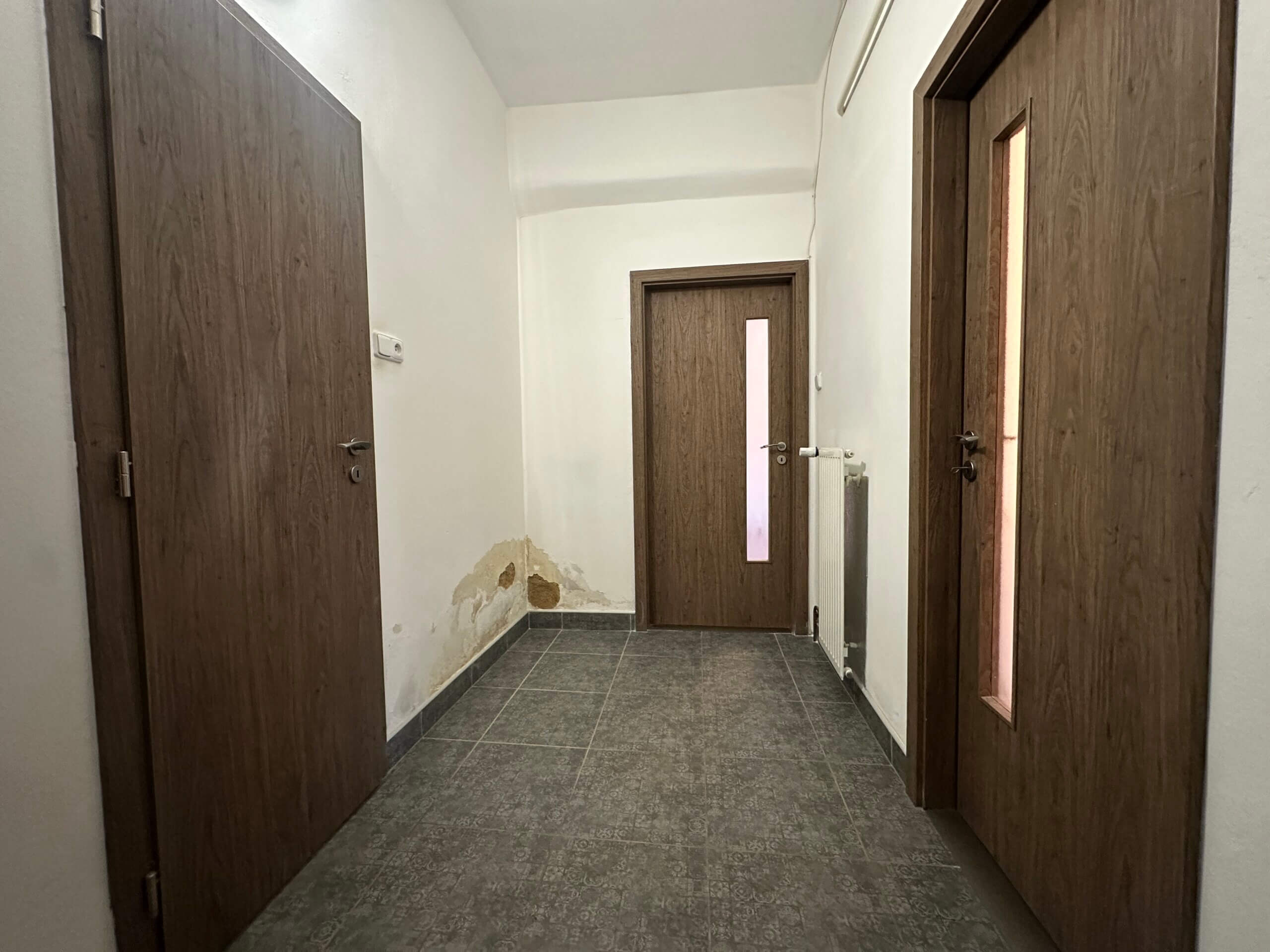 V prostoru okolí sprchového koutu se v současnosti projevuje zvýšená vlhkost zdiva (je vidět na fotodokumentaci), která je s největší pravděpodobností způsobena chybějící hydroizolací koupelny. Pro plnohodnotné odstranění tohoto stavu bude vhodná rekonstrukce koupelny a oprava navazujících omítek.