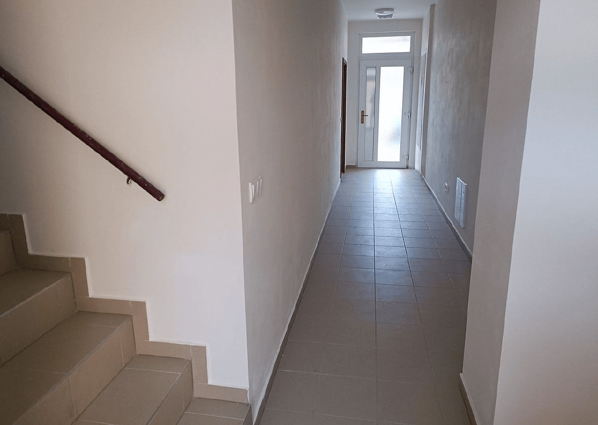 - Vinylová podlaha v obytných místnostech, dlažba v ostatních částech