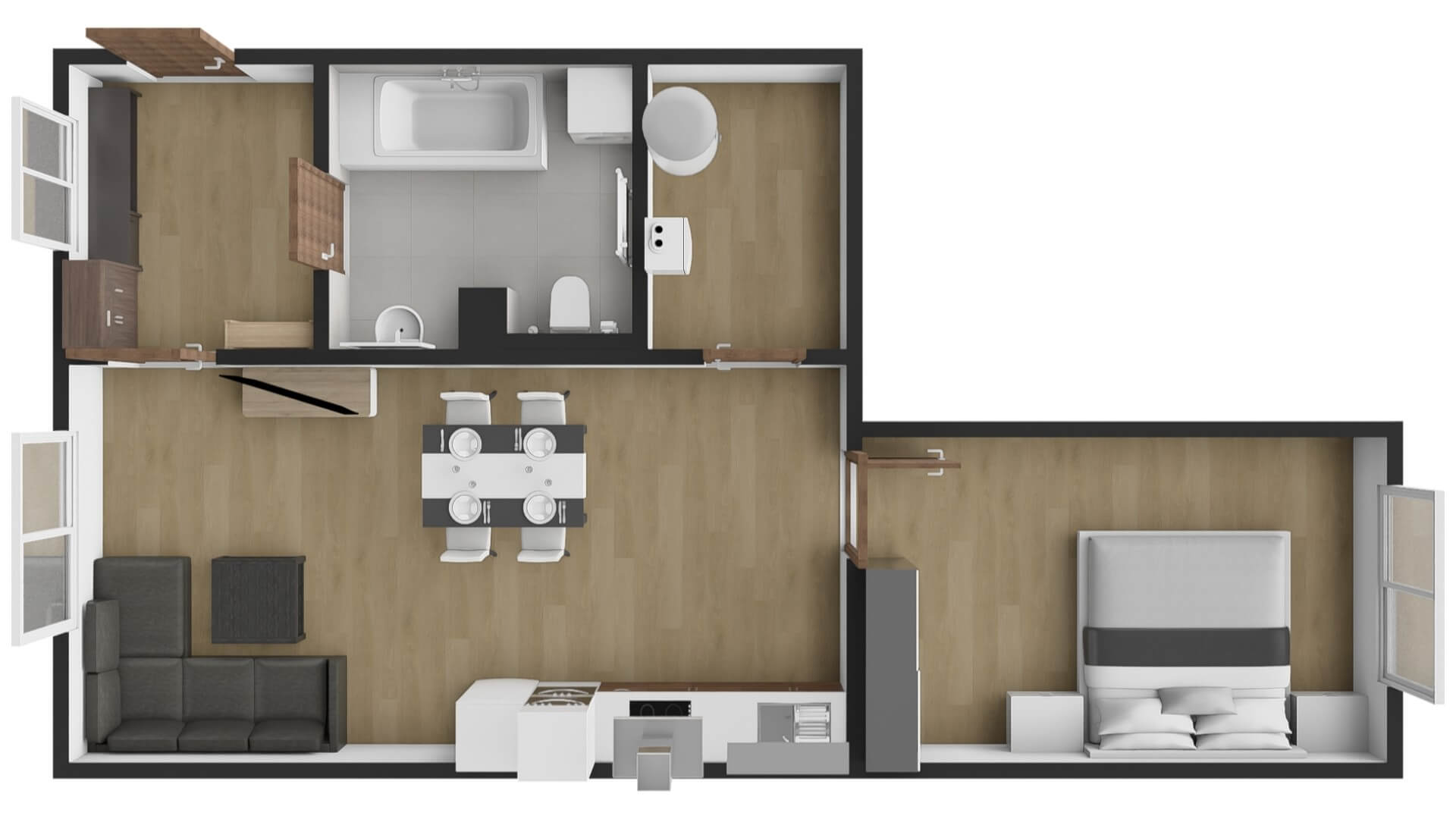 - Byt se prodává bez kuchyňské linky, což umožňuje realizaci vlastního řešení