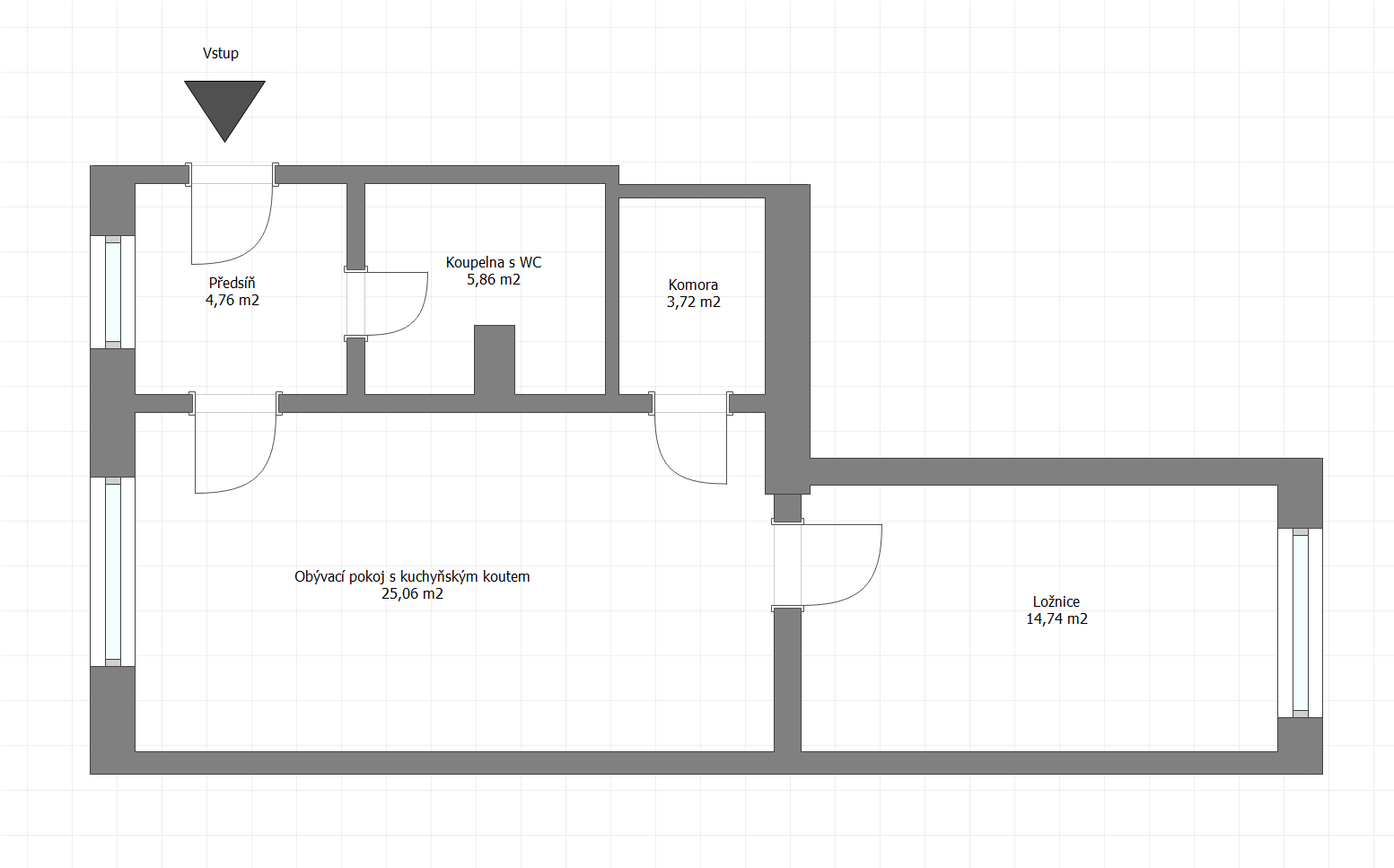 - Ložnice: 14,74 m²