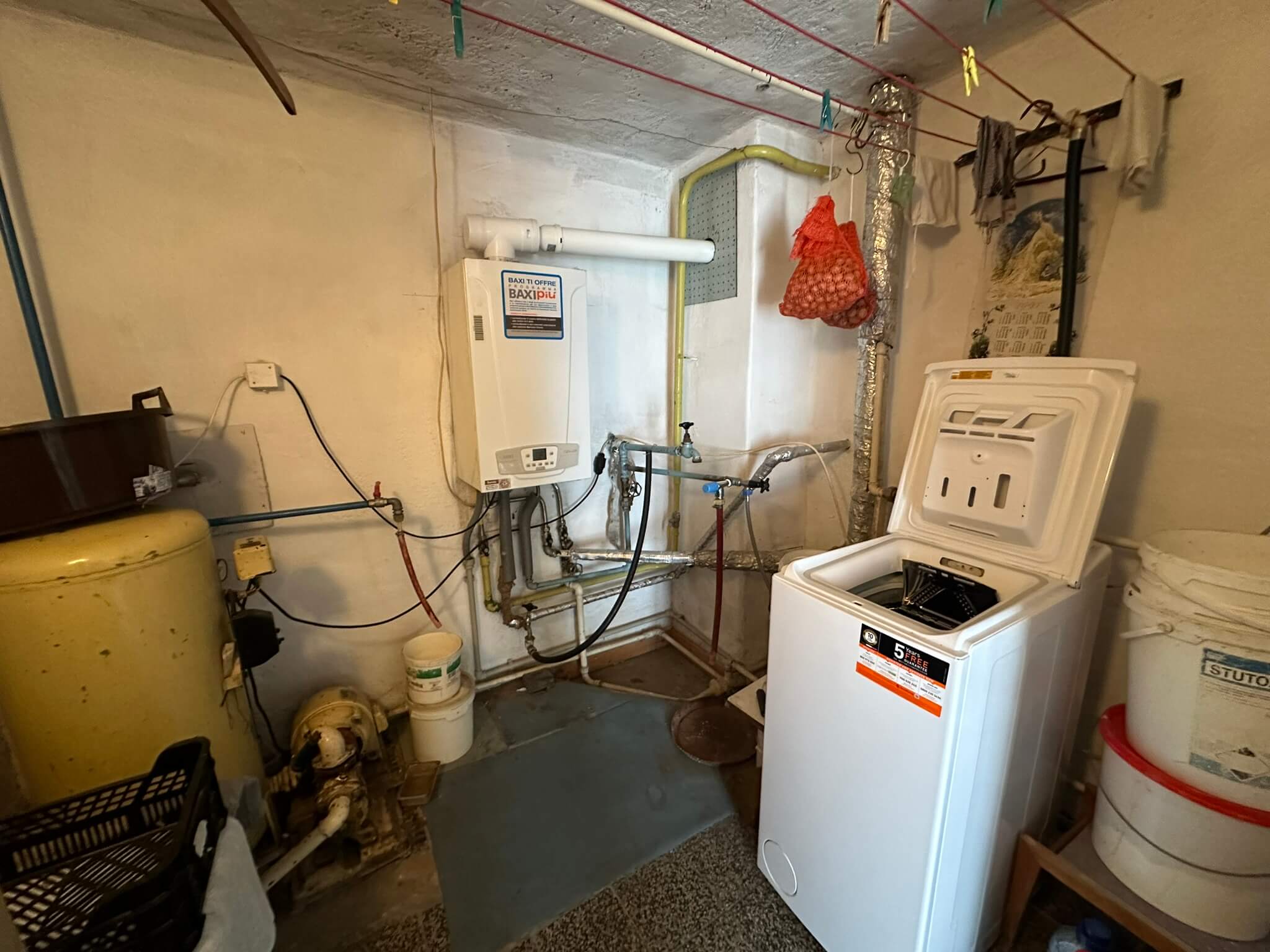 Stávající vytápění a ohřev teplé vody je řešen novým plynovým průtokovým kotlem (BAXI).