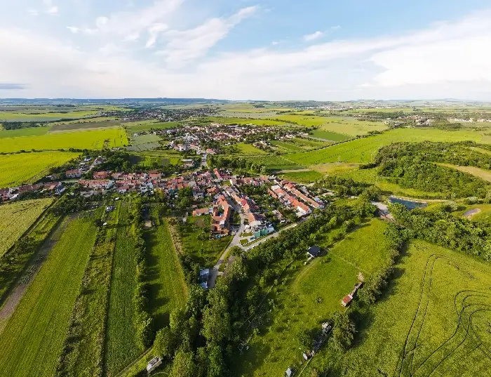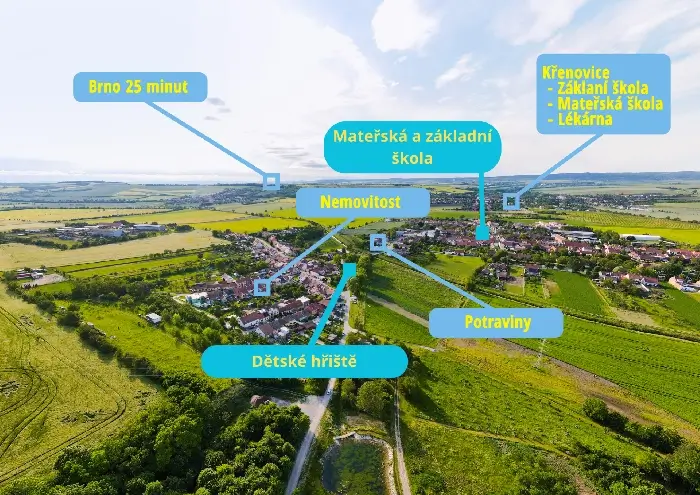 Velmi dobrá dostupnost do Brna i Slavkova u Brna.