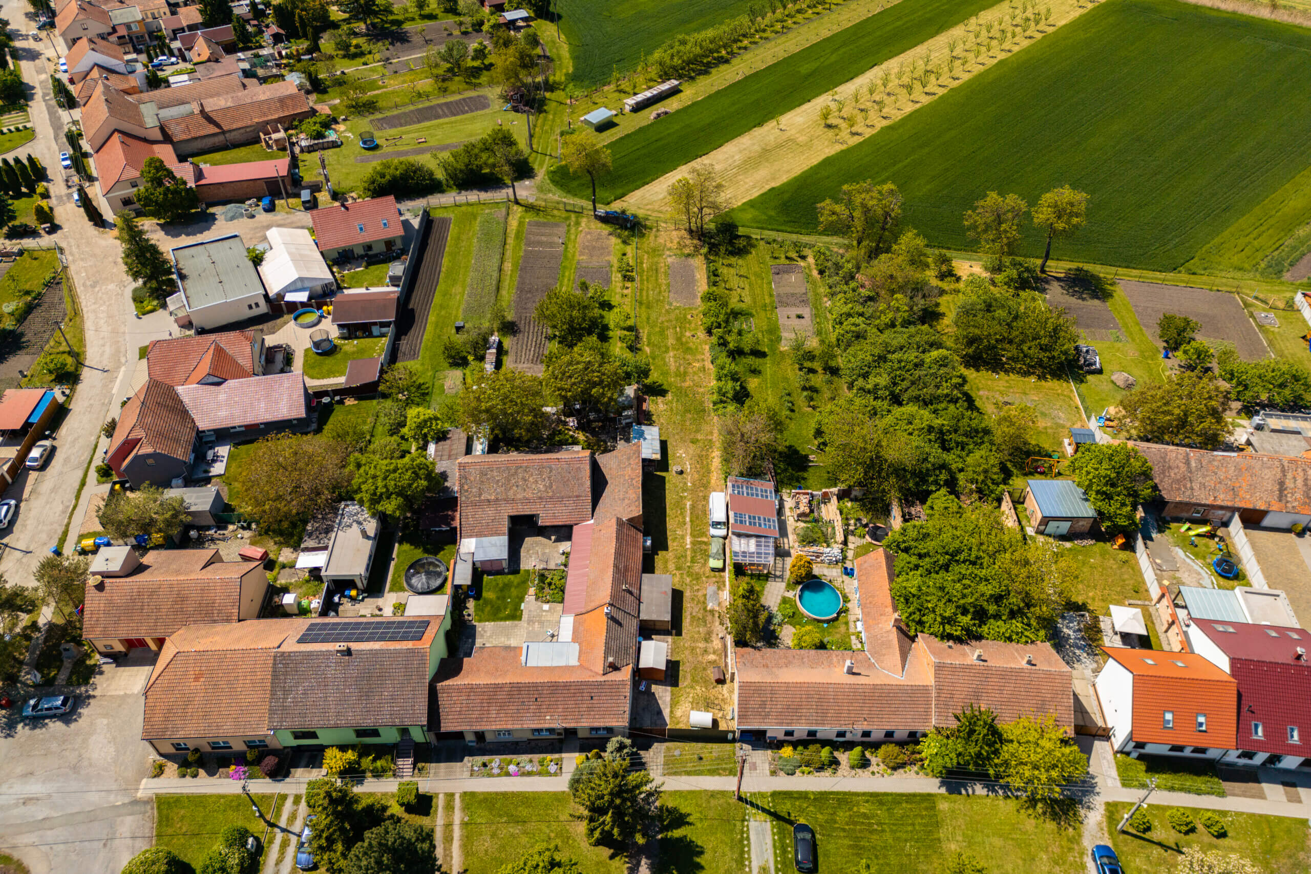 Parcela č. 47 je orientována do řadové zástavby a veškeré sítě jsou před pozemkem (Elektřina, voda, plyn, kanalizace). Po dodržení podmínek územního plánu pro využití ploch je možné realizovat výstavbu. Ke stavbě na pozemku je zpracována studie v provedení RD nebo dvou bytových jednotek. (Studie nebyla konzultována v rámci stavebního úřadu a jedná se tedy pouze o ilustrační návrh, jak by mohla budoucí stavba vypadat!). Na pozemku v jeho zadní části se nachází studna.