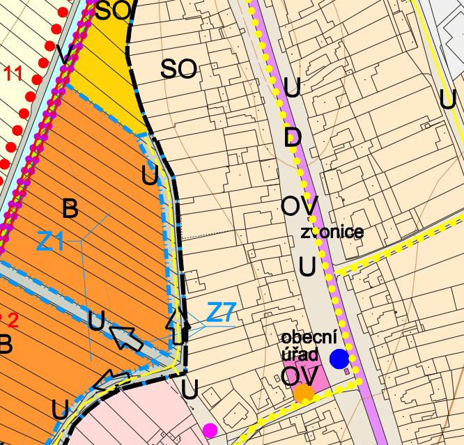 Dle platného územního plánu se jedná o plochu „SO – Plochy smíšené obytné“